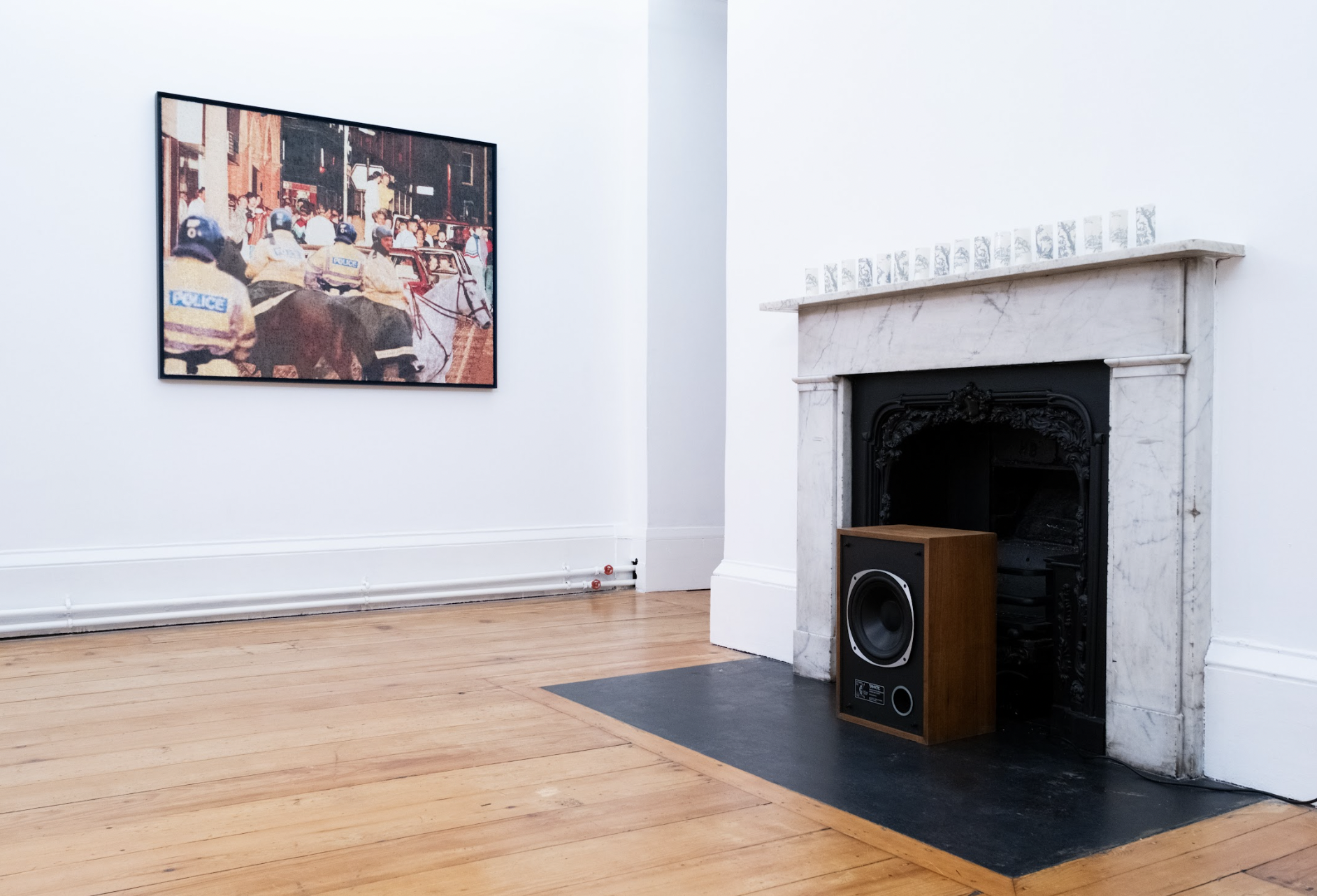 Expressing the current and historic expression of governance and state violence across industry, working class people and protests. Holman's 'Destriers' series located governance and state violence in both public and domestic spaces, exploring working class protest, crowd theory and police control strategies, as part of an English heritage that first appears in the Bayeux Tapestry.
