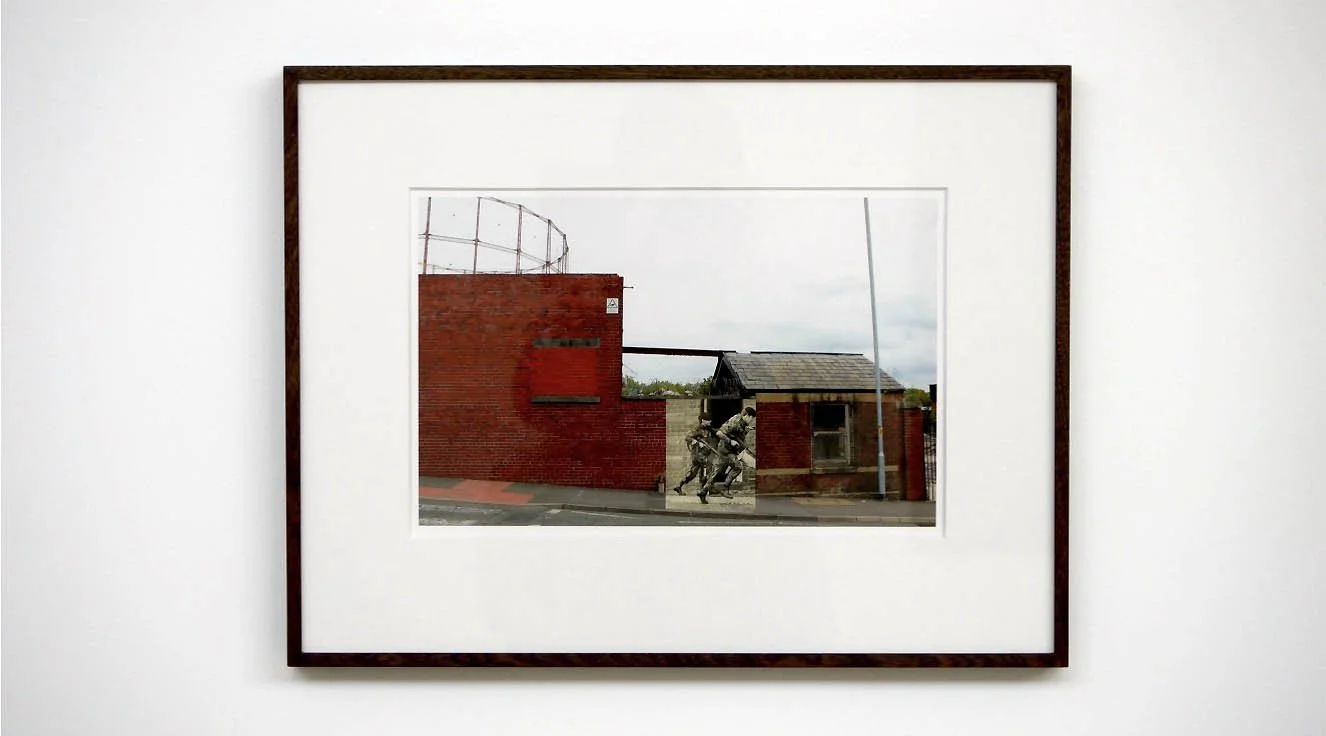 “When I saw the boys that I taught throwing stones and shooting at soldiers I wanted to protect them. I saw my 19-year-old father running through Blackburn streets with a gun, and I wanted to rescue him. I began to time-travel, collaging the photos of then and now, of Blackburn and Belfast, blurring the boundaries of the architecture, leaping back 40 years, and back again.”