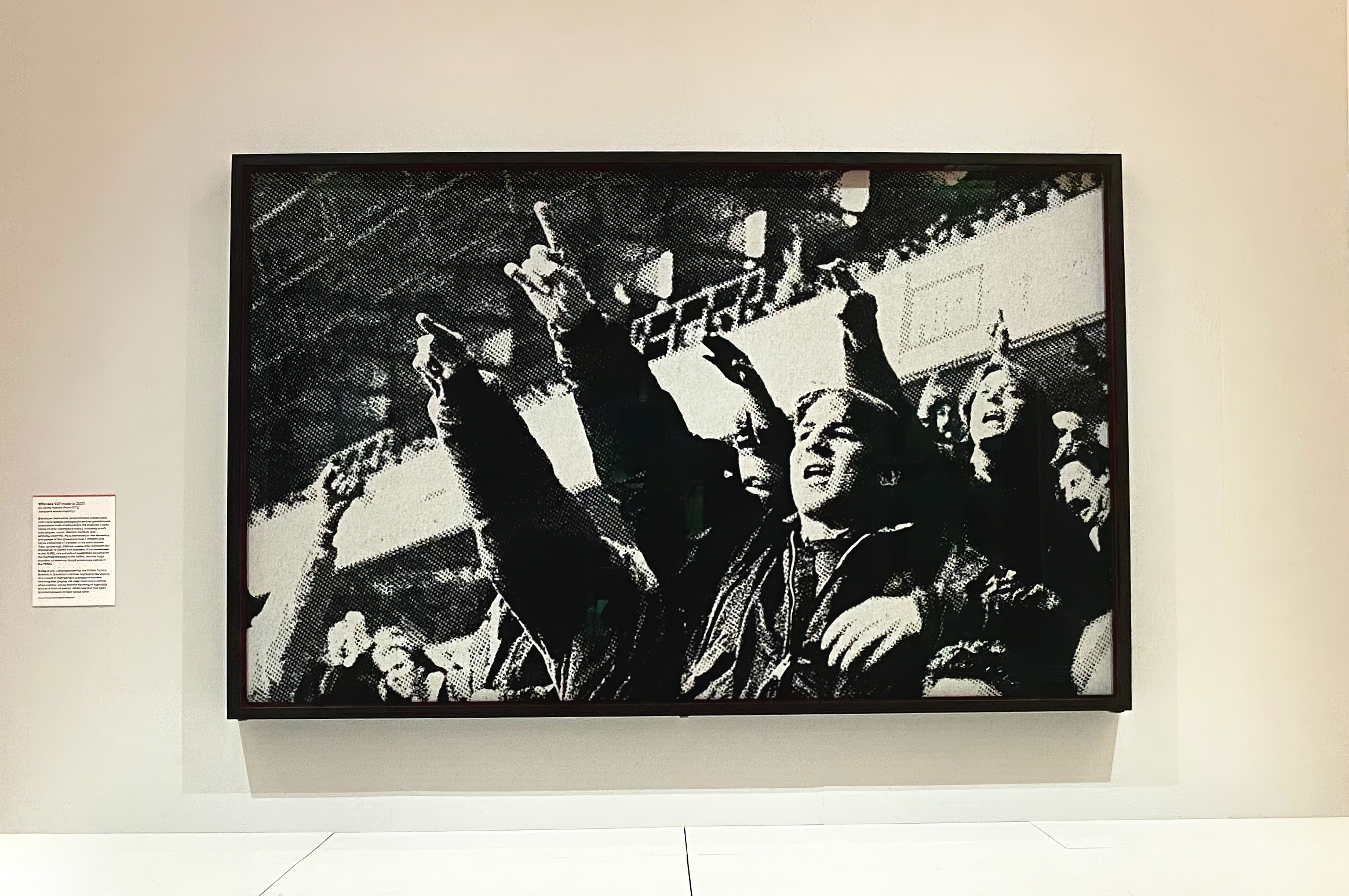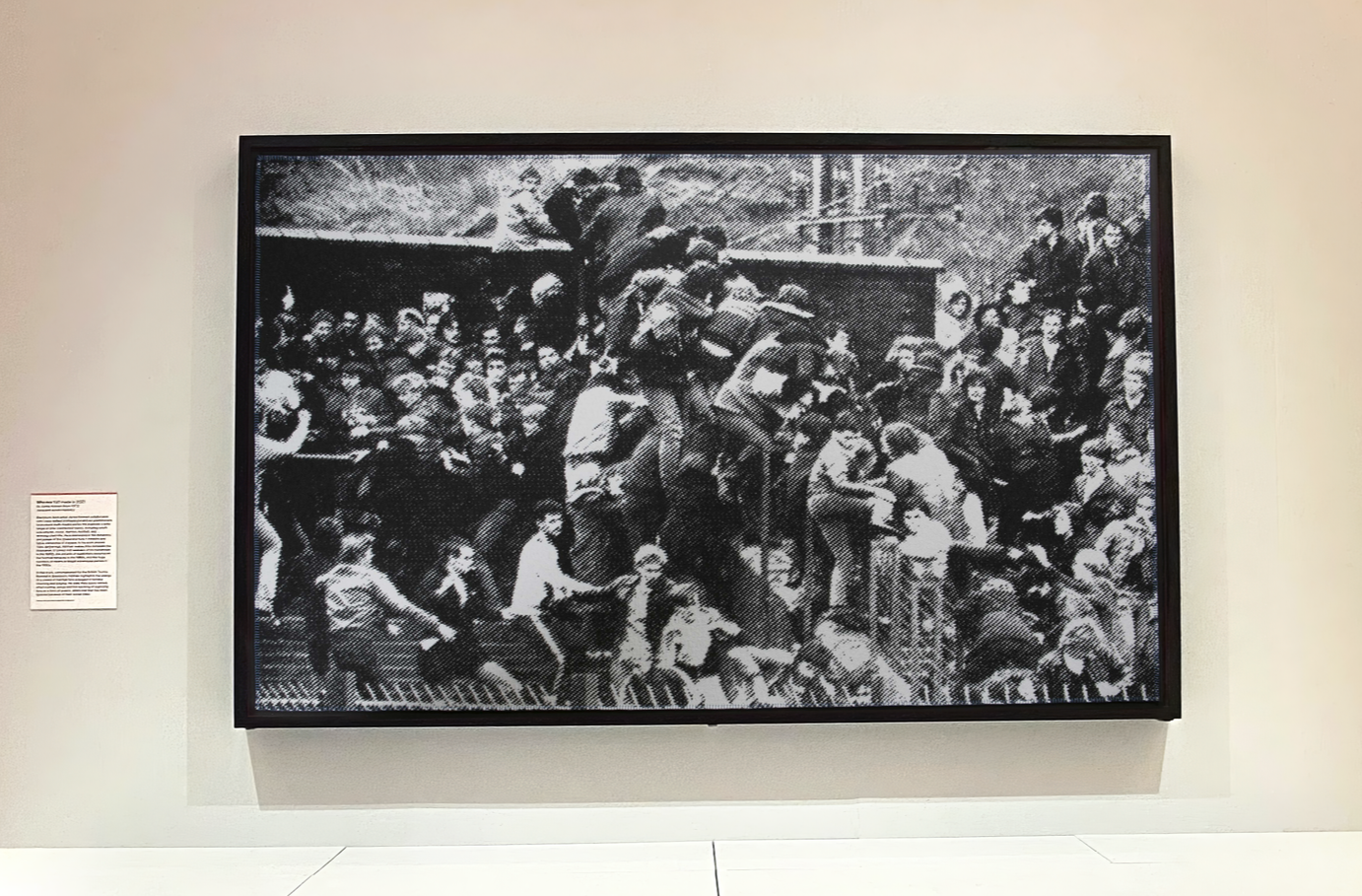 The provocation that steered Holman’s artworks that became a part of ‘The British Invasion’ where he interrogates how pop music, fashion and sport hold the power of attraction and distraction, and their contrary co-existence alongside violence and conflict. Identifying the emergence of popular culture and the threads which lead us back to their colonial catalysts via the cotton mills of Blackburn, Holman explores the founding of the football league by mill workers and the evolution of terrace culture, identity and clothing, exploring the complex relationship between class, colonialism and culture.