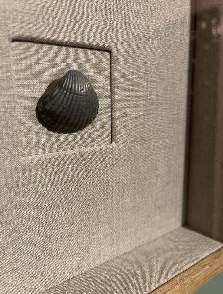 A series of 23 hand cast cockles in Victorian lead, presented in a wall mounted case. Originally created with 23 lead cockles, each cast to represent a life lost, with two placed separately - a symbol of those who were not recovered. This recent work has been reconfigured since the discovery of one of the men. One cockle remains displaced from the group representing Dong Zin Wu who is still missing.